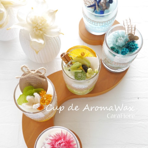 Lesson2~アロマワックスカップ~ ※国産ソイワックス(大豆)とゼリーのような質感のジェルワックスを使ってスィーツのようなカップタイプのアロマワックスをお作りいただきます。 |