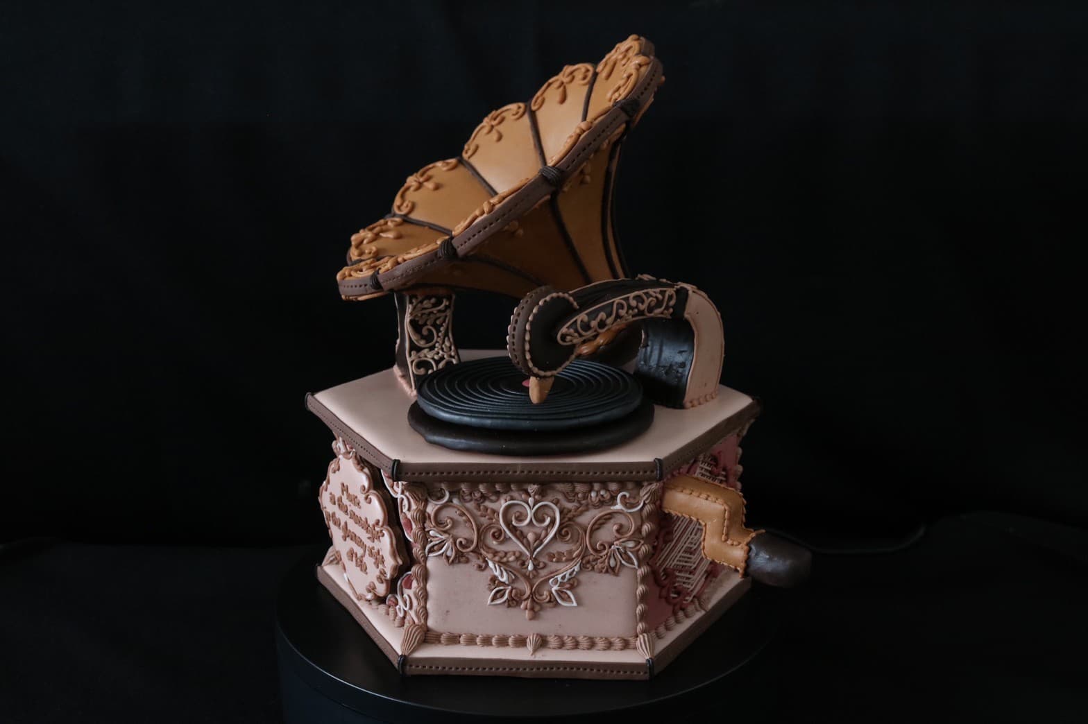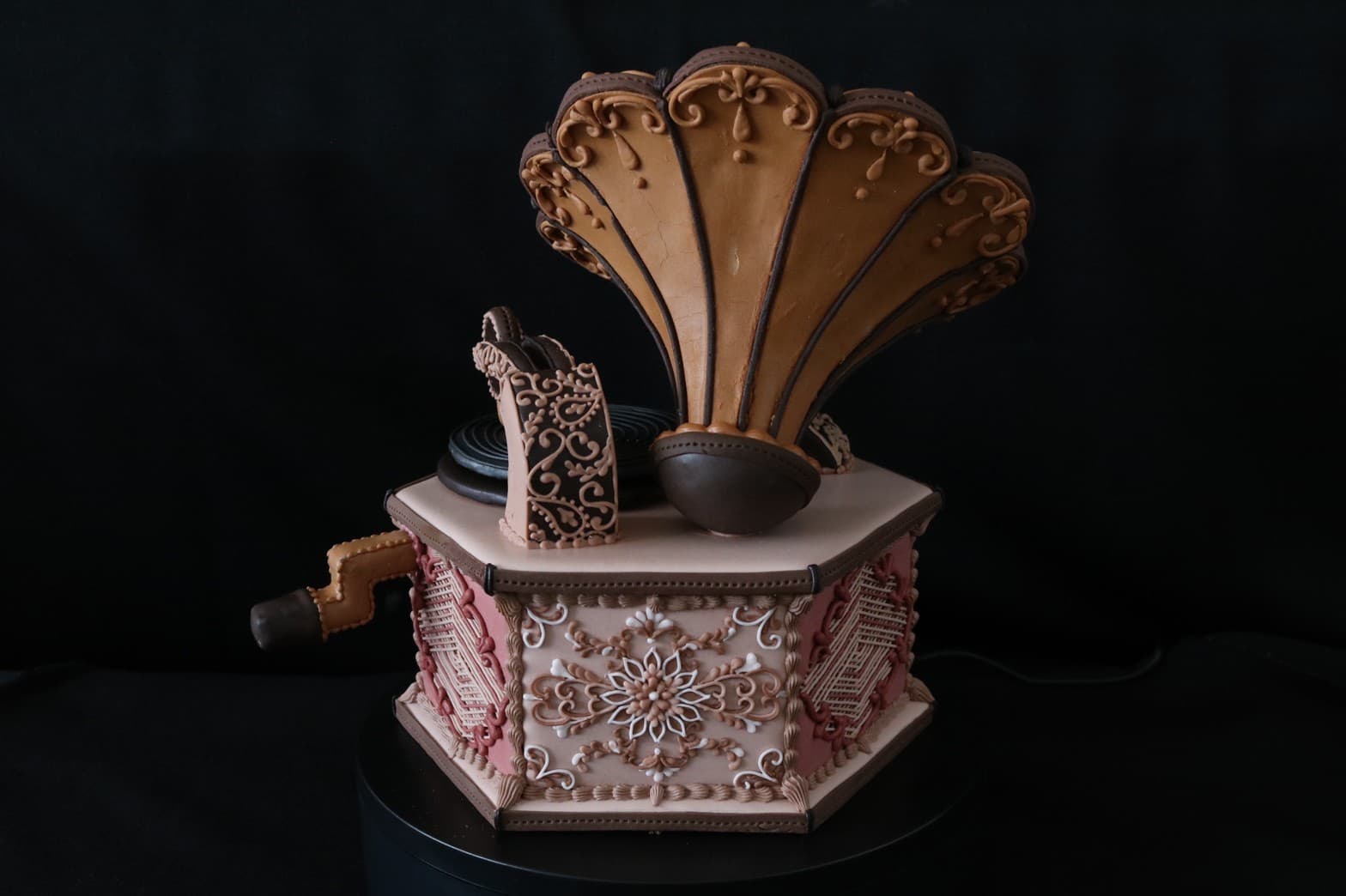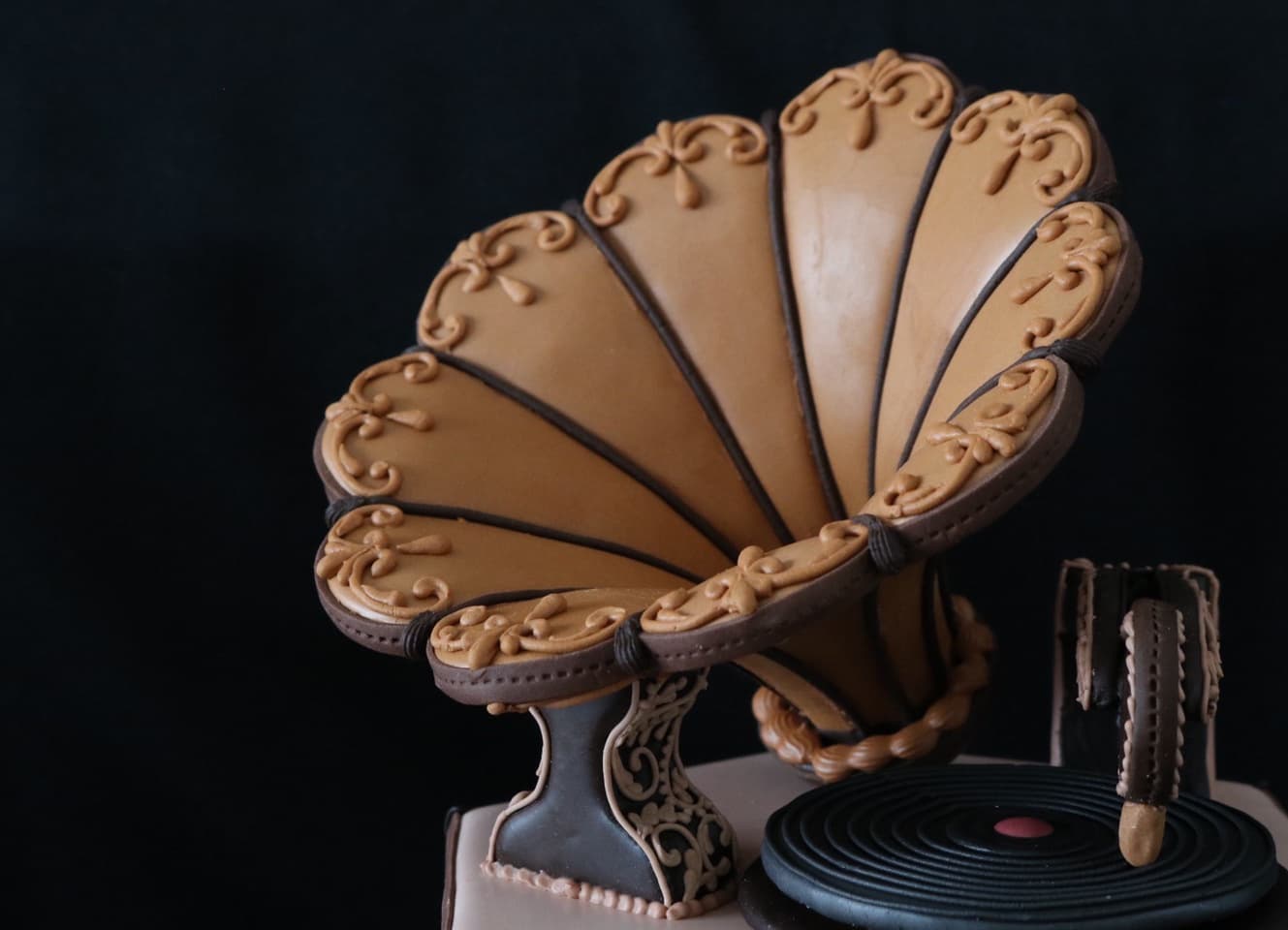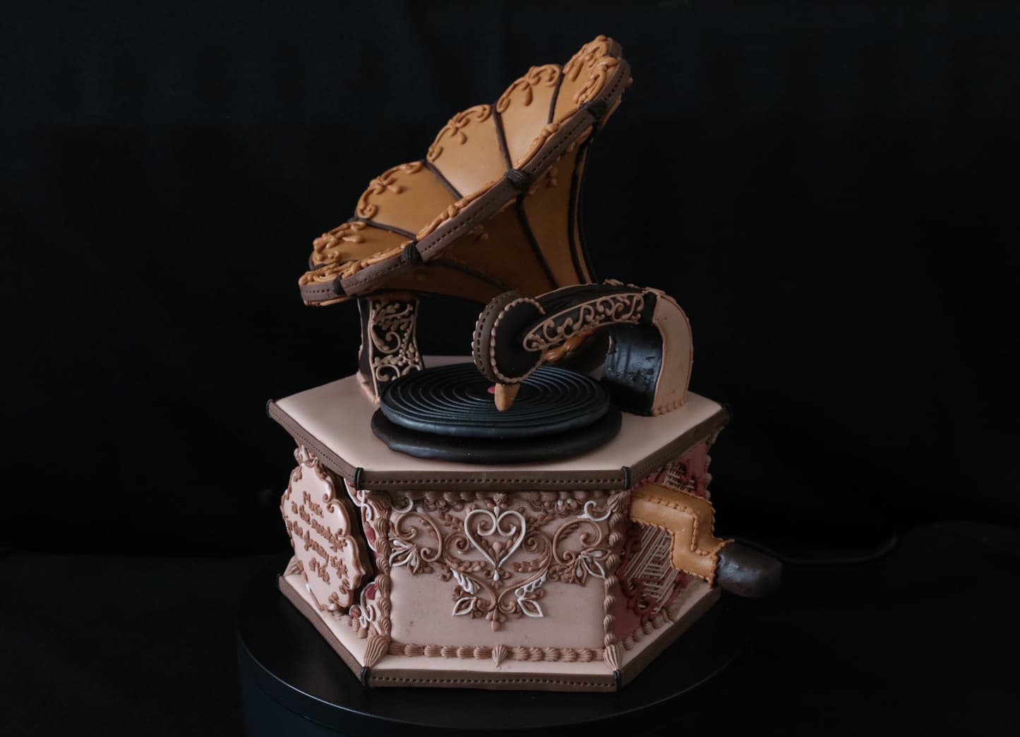この作品に込めた思いは、この一年半でコロナにより世界中が困難に見舞われ、沢山の方々が亡くなり、生活が一変したと思います。そんな中、音楽は人々に癒しと安らぎを与え、言葉の壁を越えてコミュニケーションのとれる世界共通の文化だと思います。その音楽を沢山の方々に届くよう、蓄音機に込めて作成しました。