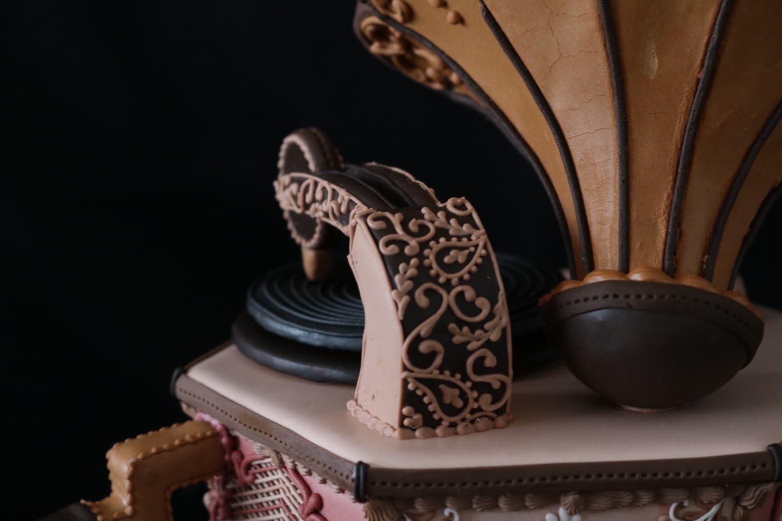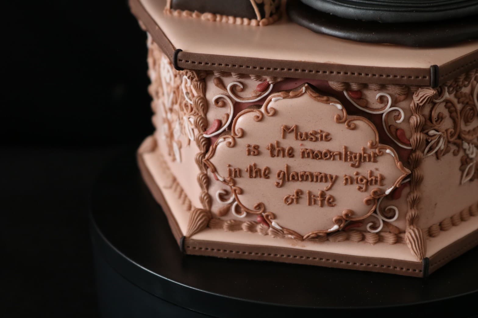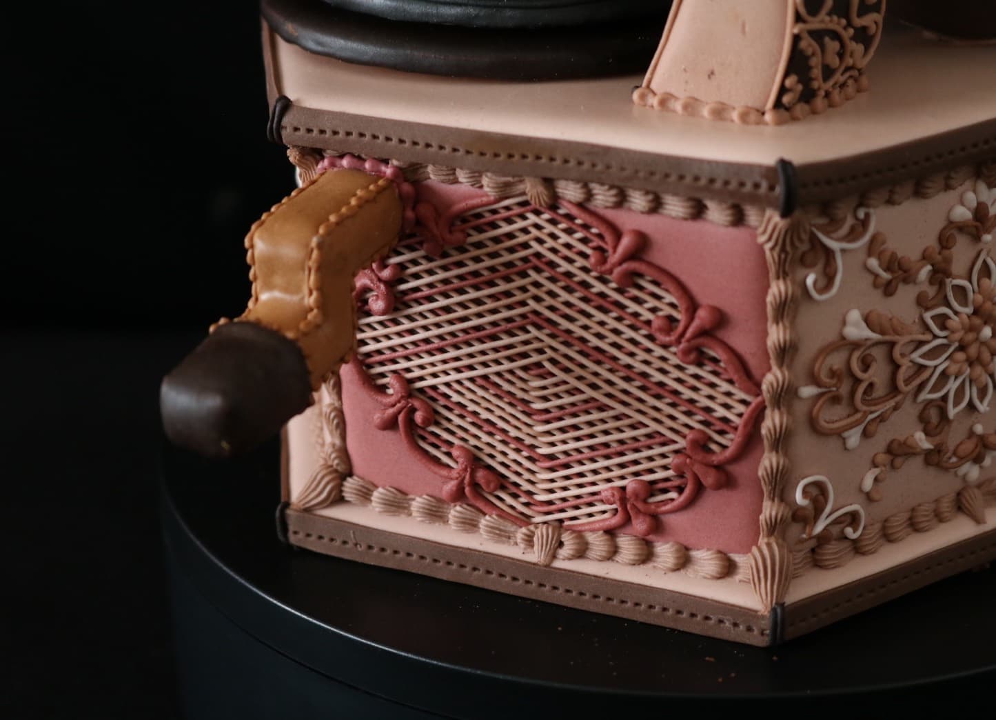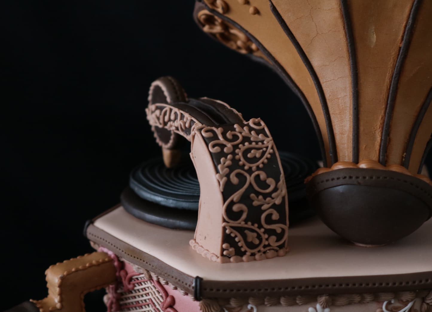 この作品に込めた思いは、この一年半でコロナにより世界中が困難に見舞われ、沢山の方々が亡くなり、生活が一変したと思います。そんな中、音楽は人々に癒しと安らぎを与え、言葉の壁を越えてコミュニケーションのとれる世界共通の文化だと思います。その音楽を沢山の方々に届くよう、蓄音機に込めて作成しました。