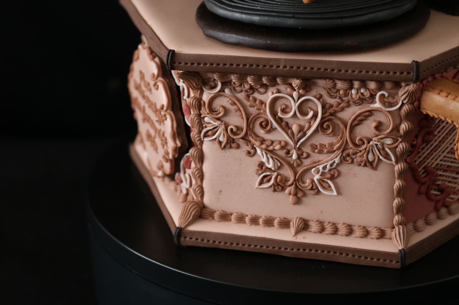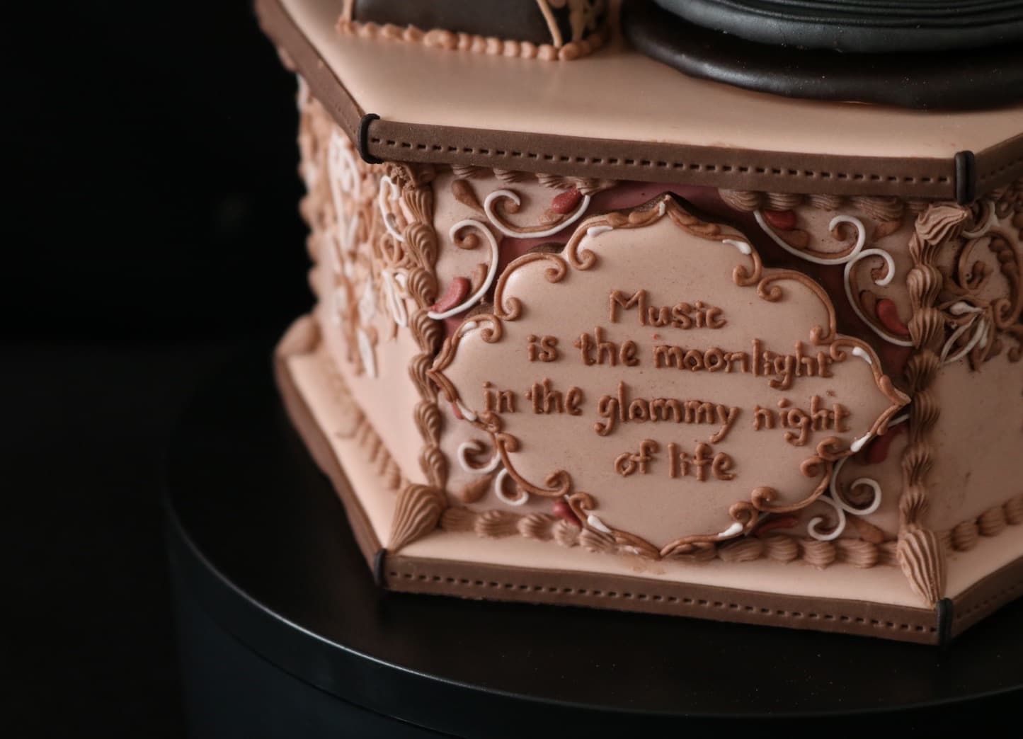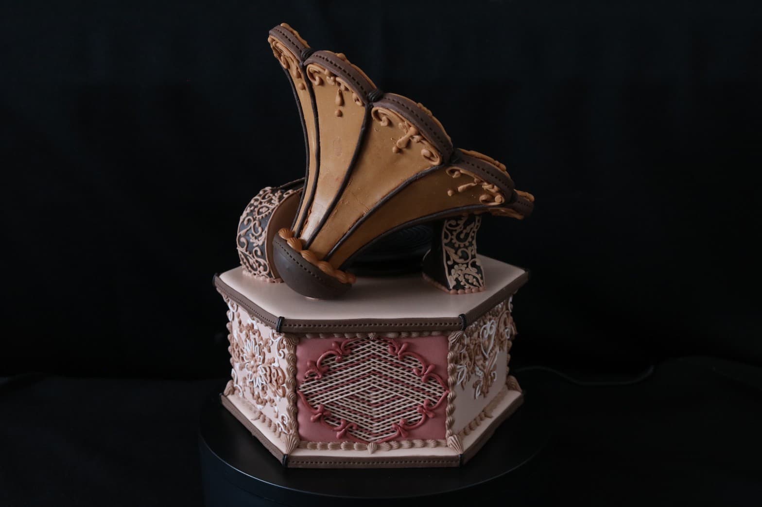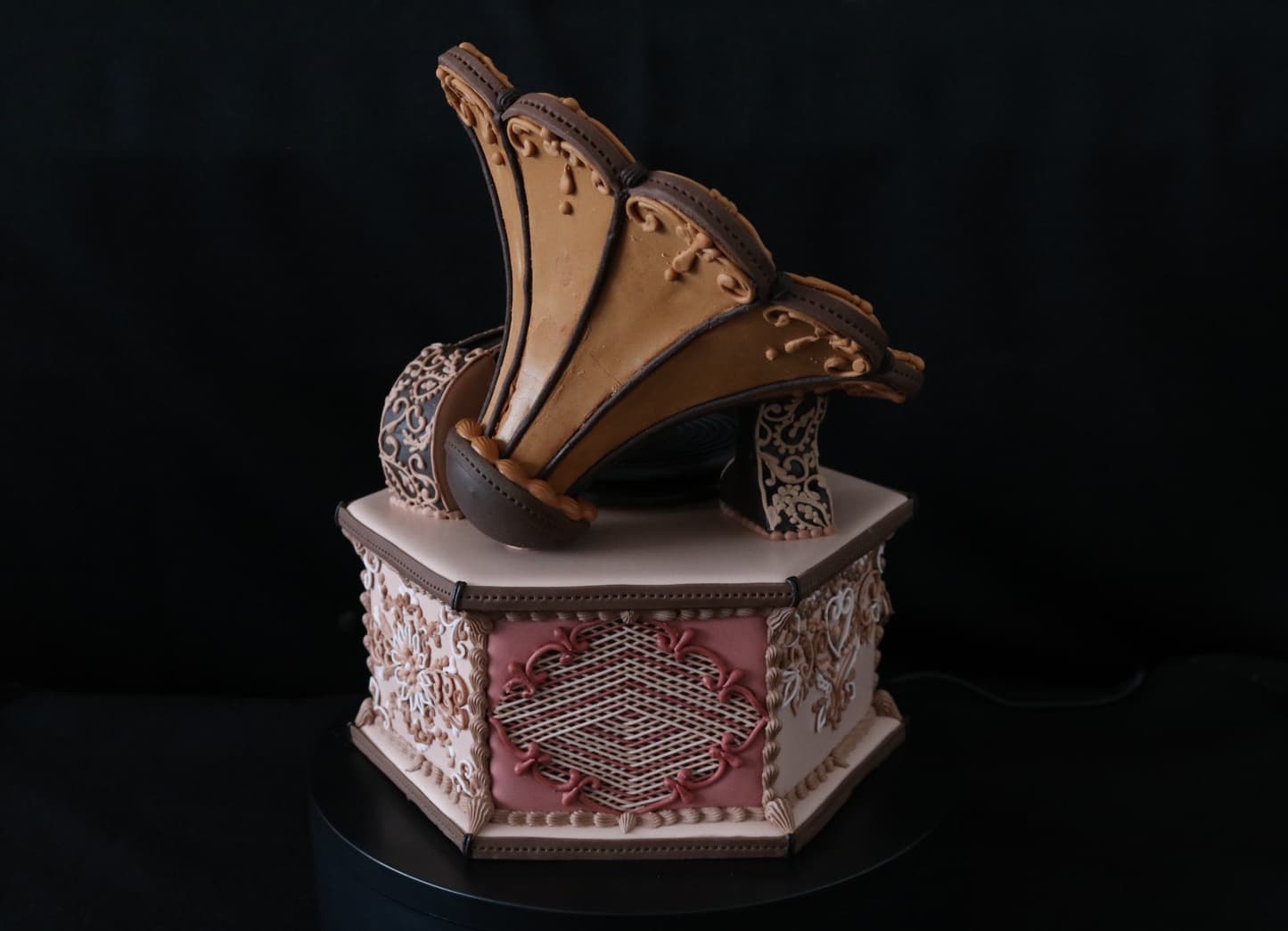 この作品に込めた思いは、この一年半でコロナにより世界中が困難に見舞われ、沢山の方々が亡くなり、生活が一変したと思います。そんな中、音楽は人々に癒しと安らぎを与え、言葉の壁を越えてコミュニケーションのとれる世界共通の文化だと思います。その音楽を沢山の方々に届くよう、蓄音機に込めて作成しました。